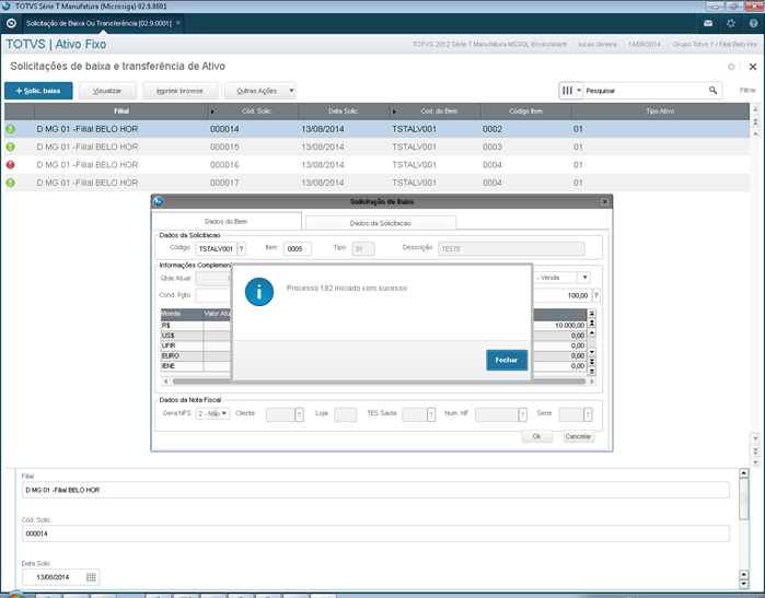 Aparecerá un mensaje informando los procesos que se iniciaron con éxito y que se enviarán para aprobación en el Fluig.