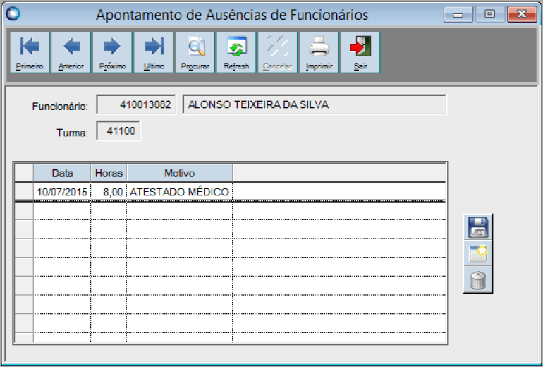 Objetivo: Apontar as ausências dos funcionários e os respectivos motivos para ausência.
