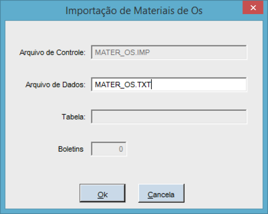 O nome do arquivo a ser importado deverá ser MATER_OS.TXT