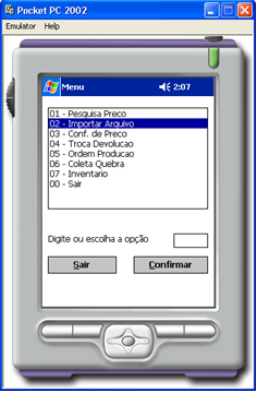 Atualmente, a única opção desenvolvida é a de pesquisa de preços. Mas a montagem do menu é feita de acordo com o arquivo programas.txt, conforme versão anterior do produto. |