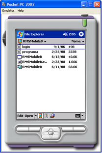 Dentro da pasta onde se encontra o executável RmsMobileB, devem ser colocados os arquivos Login.txt e programa.txt. |