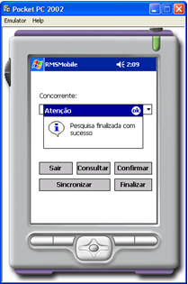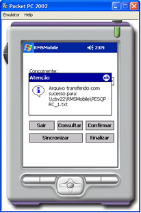 9. Após a finalização da Pesquisa, com o PDT conectado na rede, clicar no botão “Sincronizar” para que o arquivo da Pesquisa seja copiado na rede e carregado no RMS. |