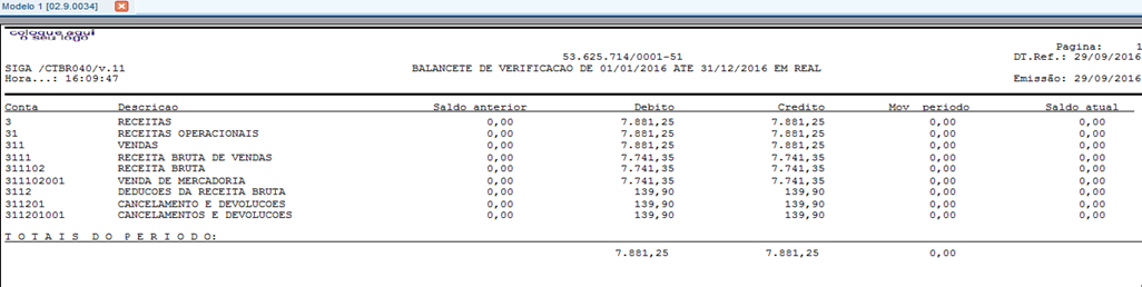 Situação Após APURAÇÃO de resultado = Ao Imprimir as contas Sintética e Analíticas o sistema Totalizada com o valor atual da conta Sintética 3 que atualmente é 7.881,25