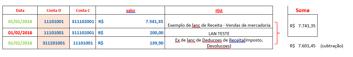 Situação Antes da Apuração : o relatório subtrai o valor da dedução , pois o valor atual da conta Sintética 3 é de 7.601,45