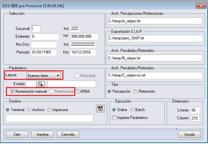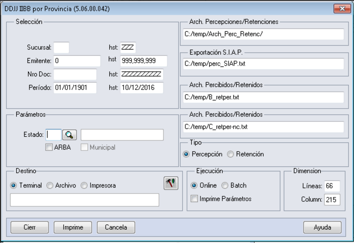- No módulo Contas a Pagar acesse: Administração e Finanças / Pagos / Contas por Pagar / Relatório / Localização / DDJJ Exp Layout por Provincia e execute o relatório para o Estado de Capital Federal / Layout de Capital Federal.