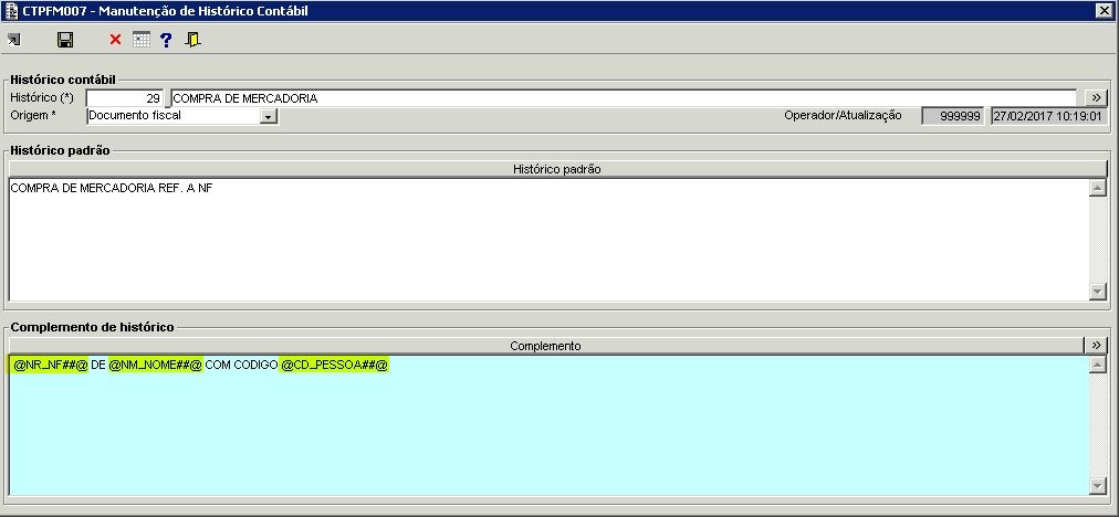 Ocorrência: | Como realizar a configuração do histórico contábil no componente CTPFM007, para que seja utilizado nas instruções. |