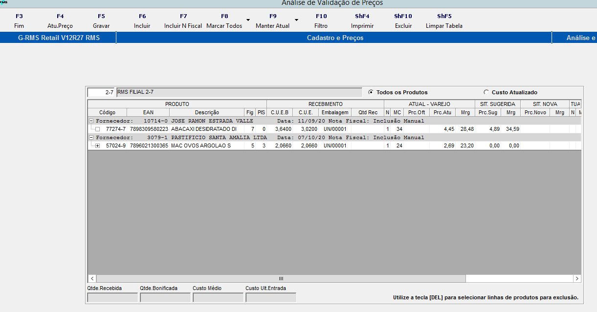 O novo preço de venda passa a vigorar de acordo com o informado no campo "Data de Vigência". O programa emite um relatório com as alterações efetuadas.