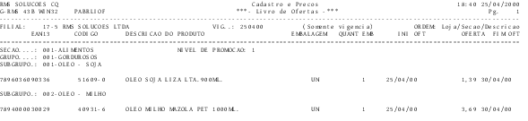 Relatório que demonstra os produtos que estão em oferta a partir de um determinado período ou data, podendo ser selecionado a loja, a seção, o fornecedor, o nível de preço, com os itens fora de linha ou não e listando por descrição ou data de vigência.