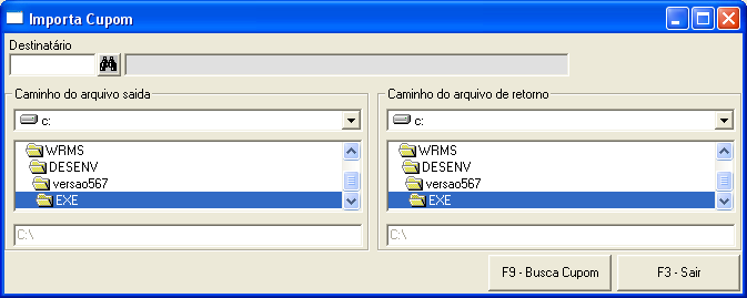 O caminho dos arquivos de saída e de retorno é procurado automaticamente pelo PDV que localizando os caminhos dos arquivos apresenta na tela a relação dos cupons de produtos devolvidos.