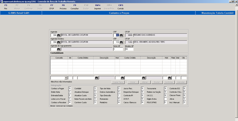Agendas para Itens Devolvidos Sem Cupom Fiscal | Código da Agenda | |