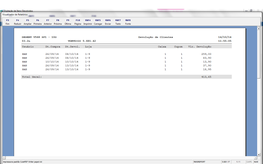 Informe o intervalo das datas inicial e final e numeração do cupom inicial e cupom final para filtrar a relação dos itens devolvidos.