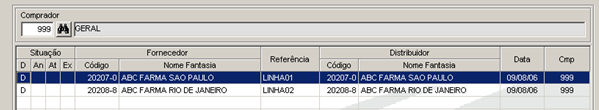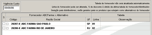 - Informar a Linha cadastrada nos fornecedores distribuidores, que irão gerar tabela de fornecedor a partir da importação do ABCFARMA.