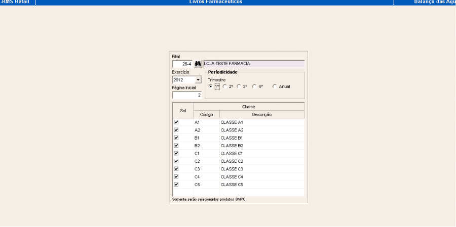 A Definição da Classe terapêutica é de responsabilidade do cliente, dentro dos entendimentos que o responsável farmacêutico tenha dos produtos a serem comercializados.