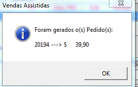 O Programa irá dizer o número e o valor do Pedido Gerado.