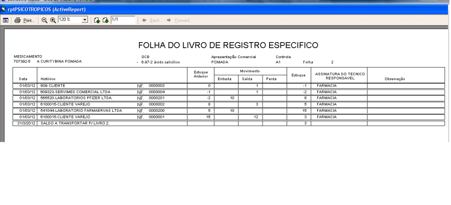 VGLRFARM – Relatório Livro Fiscal Farmácia