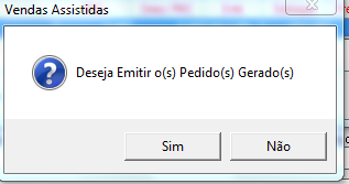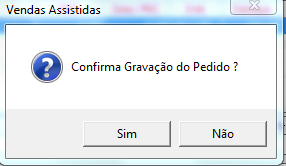 Além das perguntas acima, é possível o programa perguntar se deseja informar Transportada, é possível o programa mostrar o detalhamento da condição de pagamento, quando este é um pedido de venda a prazo, porém estas duas perguntas são configuradas no painel de controle do vendas assistidas se efetuam ou não.