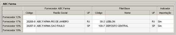 - No Cadastro de Tipos para o Fornecedor ABC FARMA, aba EDI, informar quem são os fornecedores alternativos para a geração automática da Tabela de Fornecedor.