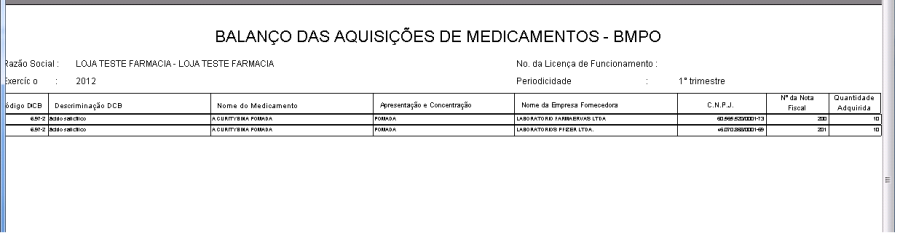 Gera o relatório de Balanço das Aquisições de Medicamentos - BMPO