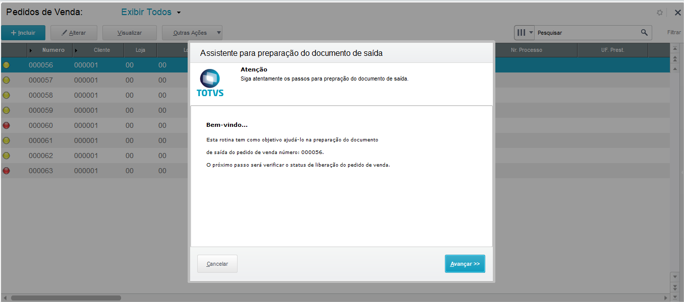 Separação dos itens para posterior geração de Documento de saída via módulo de Faturamento