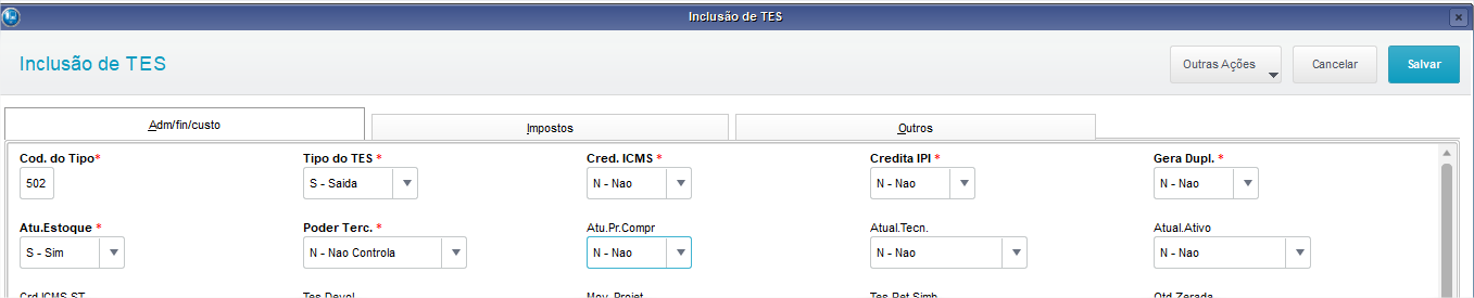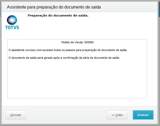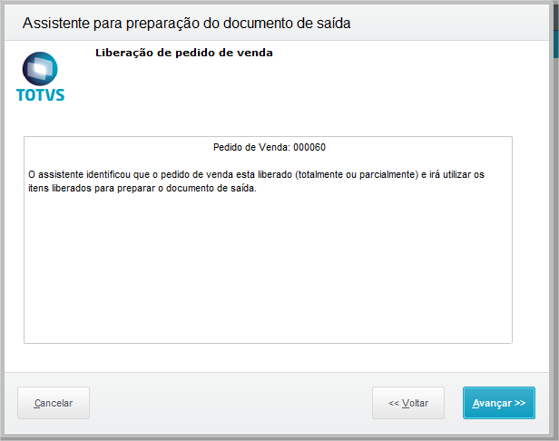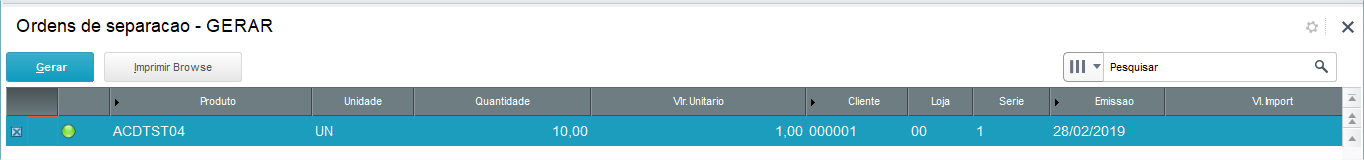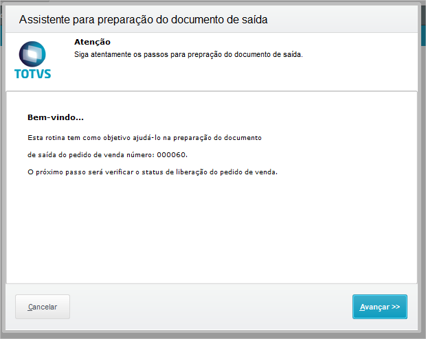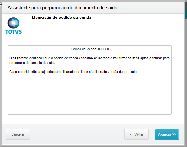 Separação dos itens para posterior geração de Documento de saída via módulo de Faturamento