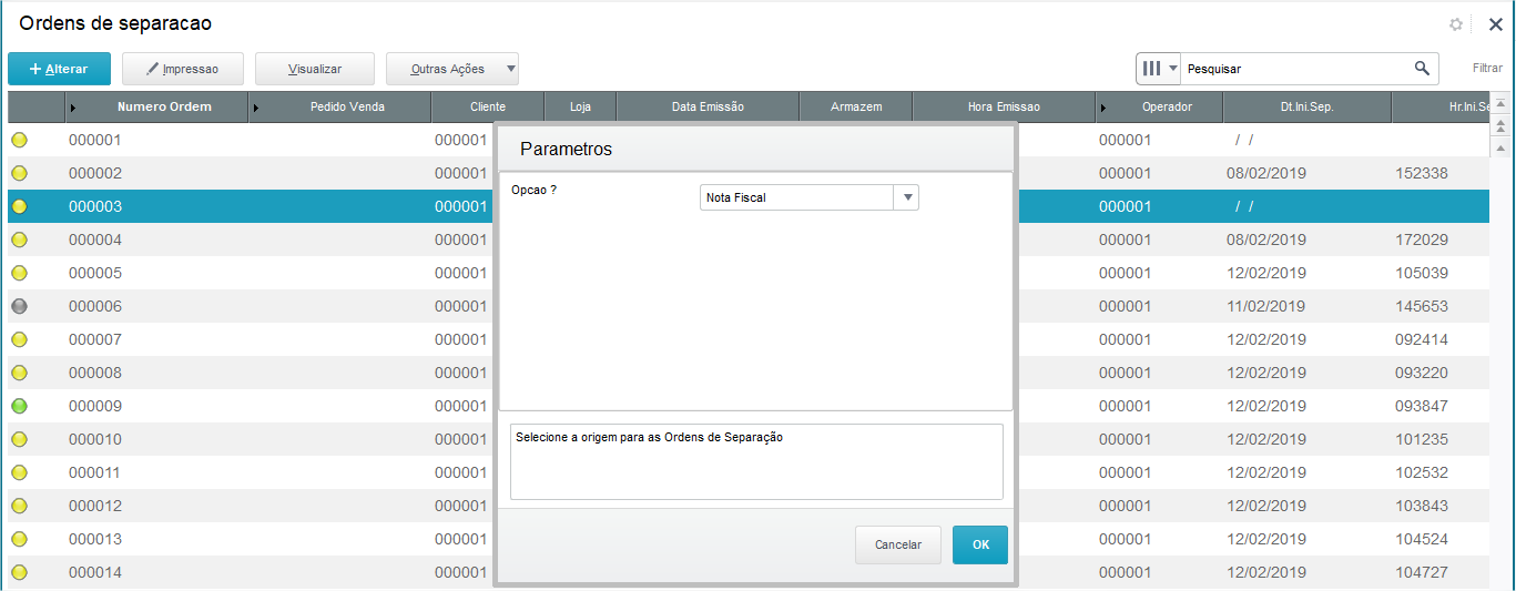 A rotina Ordens de separação tem por objetivo gerar documentos para separação de materiais no estoque.