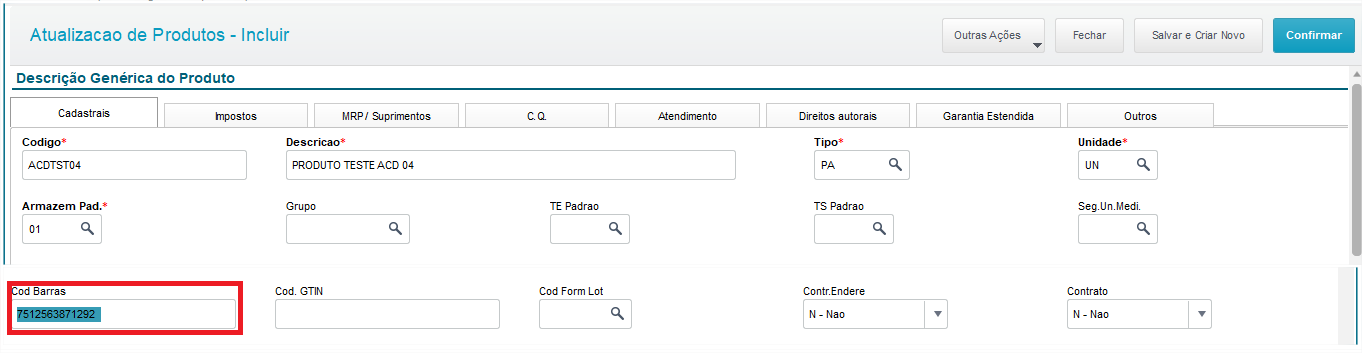 Exemplo prático do processo utilizando o Protheus