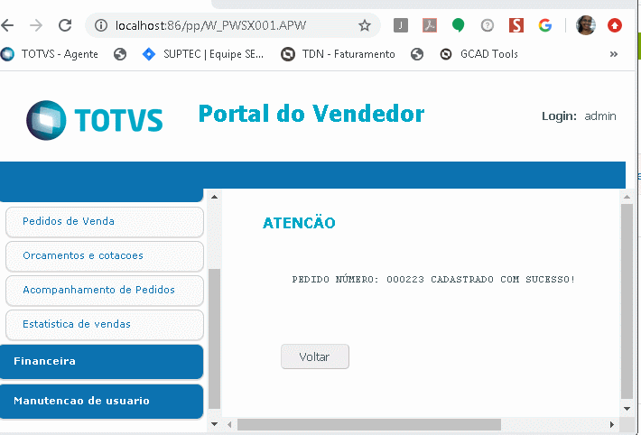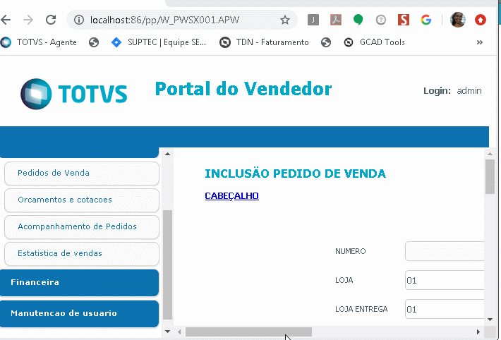 Ocorrência: | Como incluir um pedido de vendas pelo portal do vendedor? |