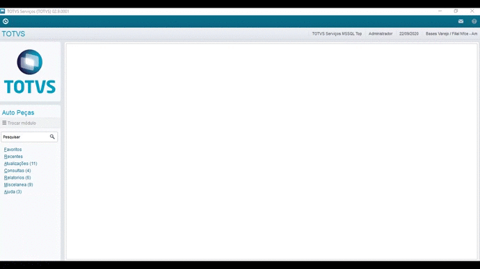 - No Módulo Auto Peças, acesse Atualizações - Cad. Gerais - Equipe Técnica (OFIOA180).