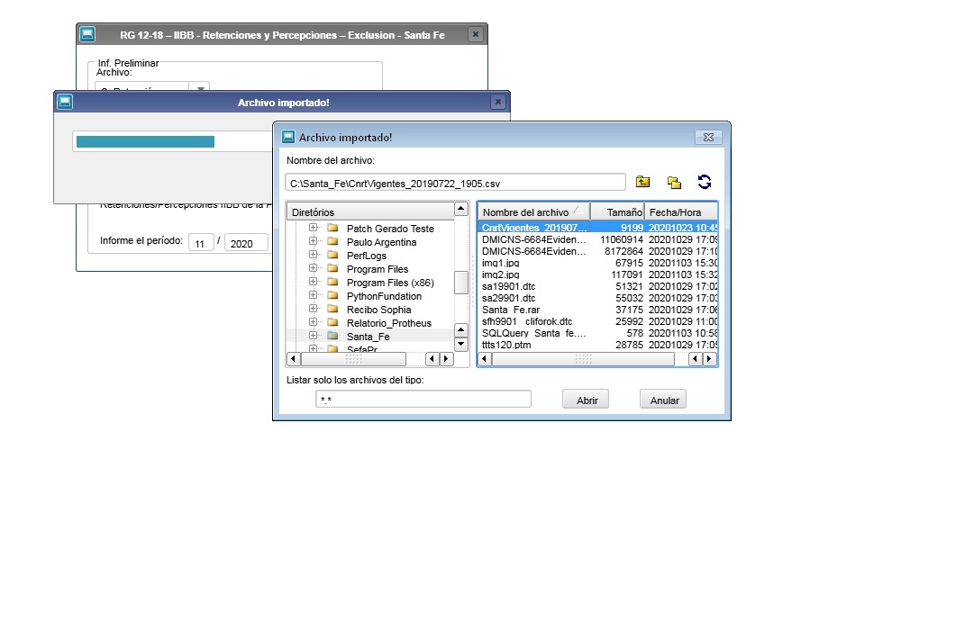 La rutina importa el archivo CSV de Santa Fe para que actualice la tabla de empresa vs. Zona fiscal (SFH), creando o actualizando registros.