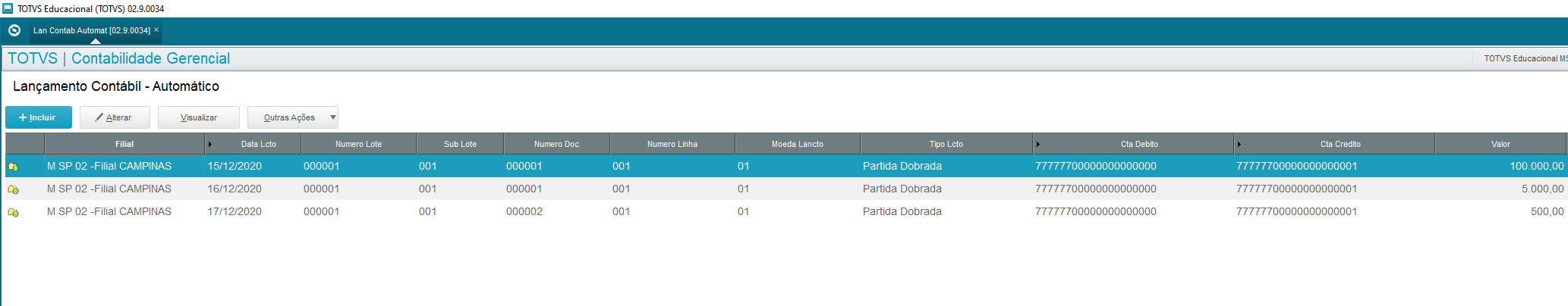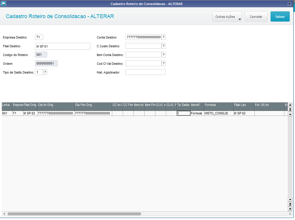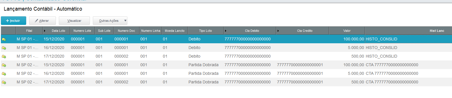 Observe que o histórico dos lançamentos de origem da filial M SP 02 foram alterados nos lançamentos na filial destino M SP 01, conforme especificado no roteiro.