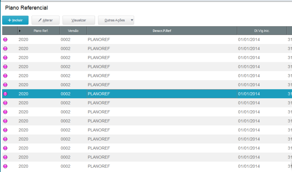 Será criada uma nova versão do Plano referencial (legenda Rosa- Revisão), onde será possível alterar ou incluir novas contas referenciais.