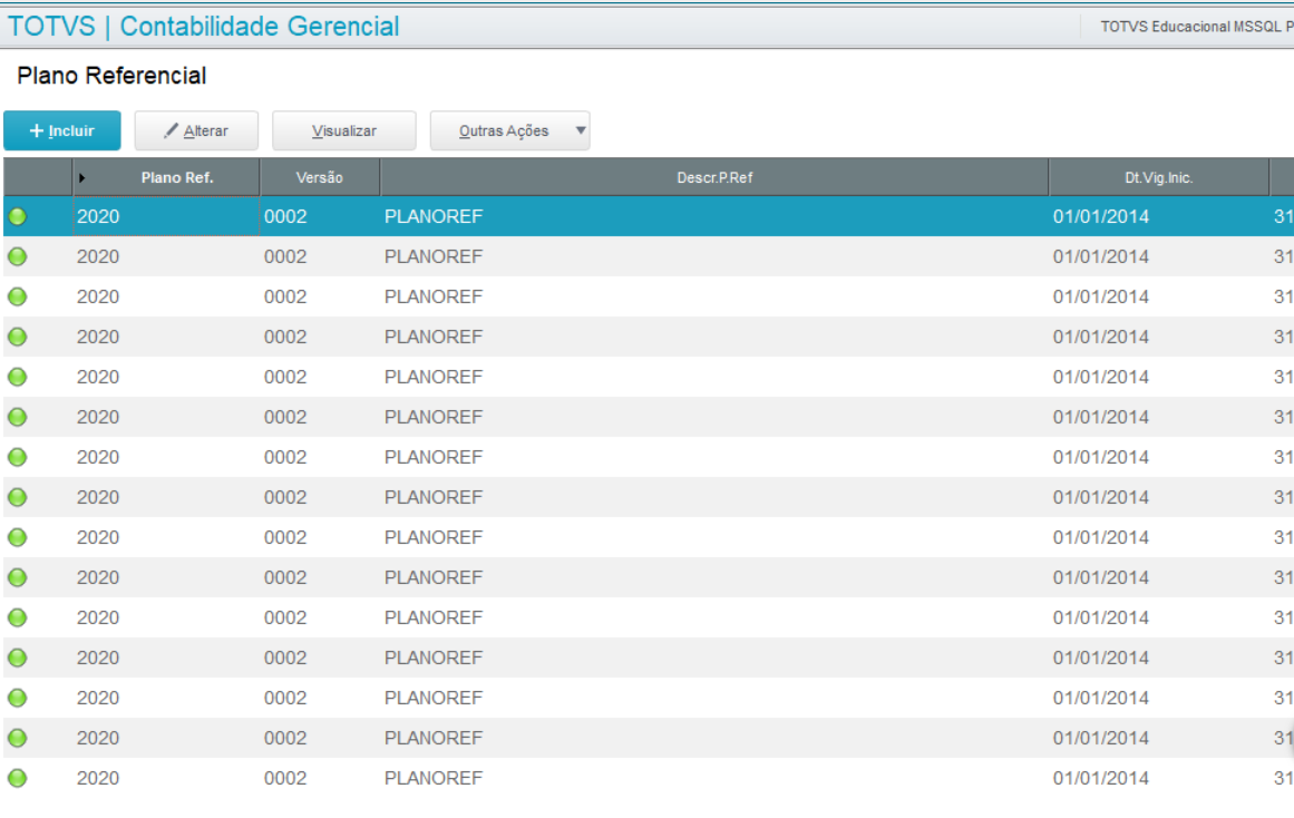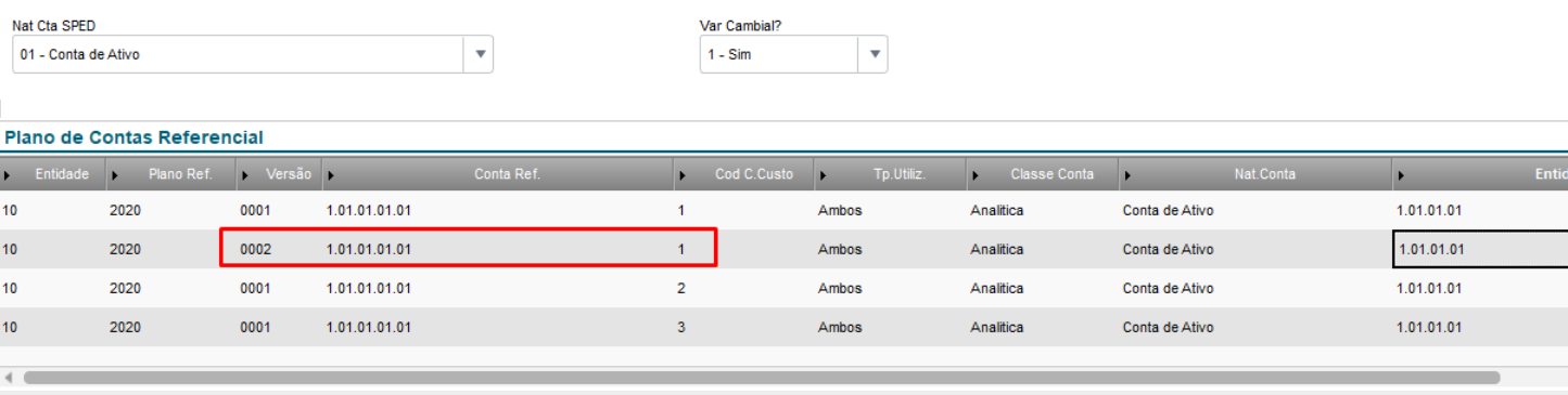 Rotina de plano de contas referencial + Outras ações + Incluir Versões + copiar: