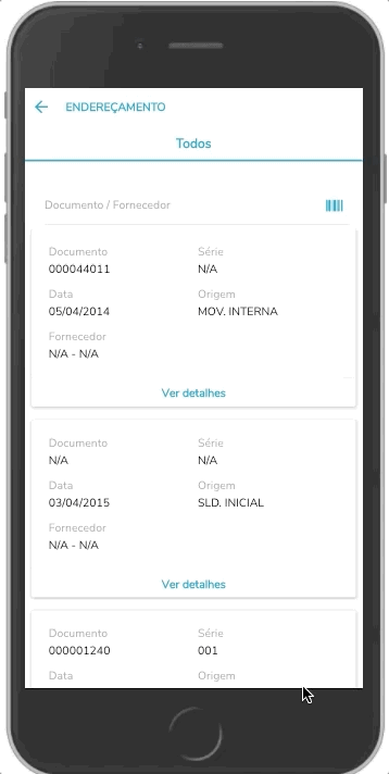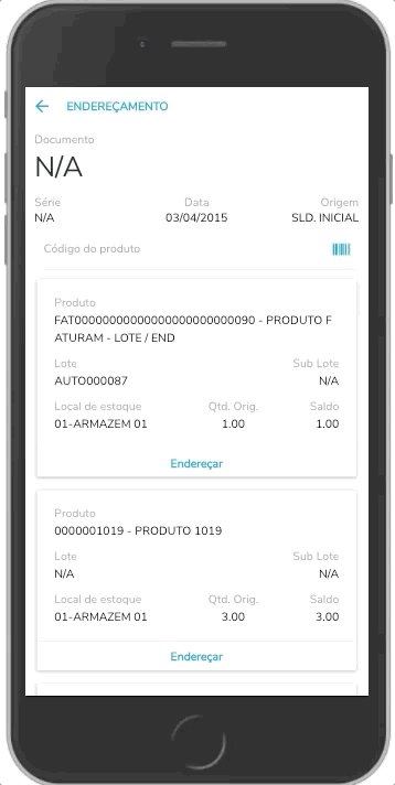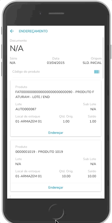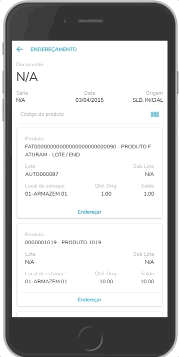 Após a executar os passos anteriores o produto ficará disponível para o endereçamento no aplicativo.