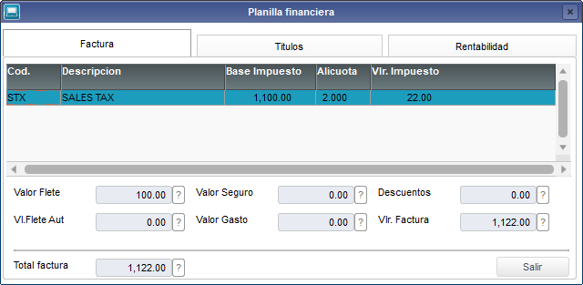 - En rodapié en la sección Gastos ingresar un valor de Flete.
