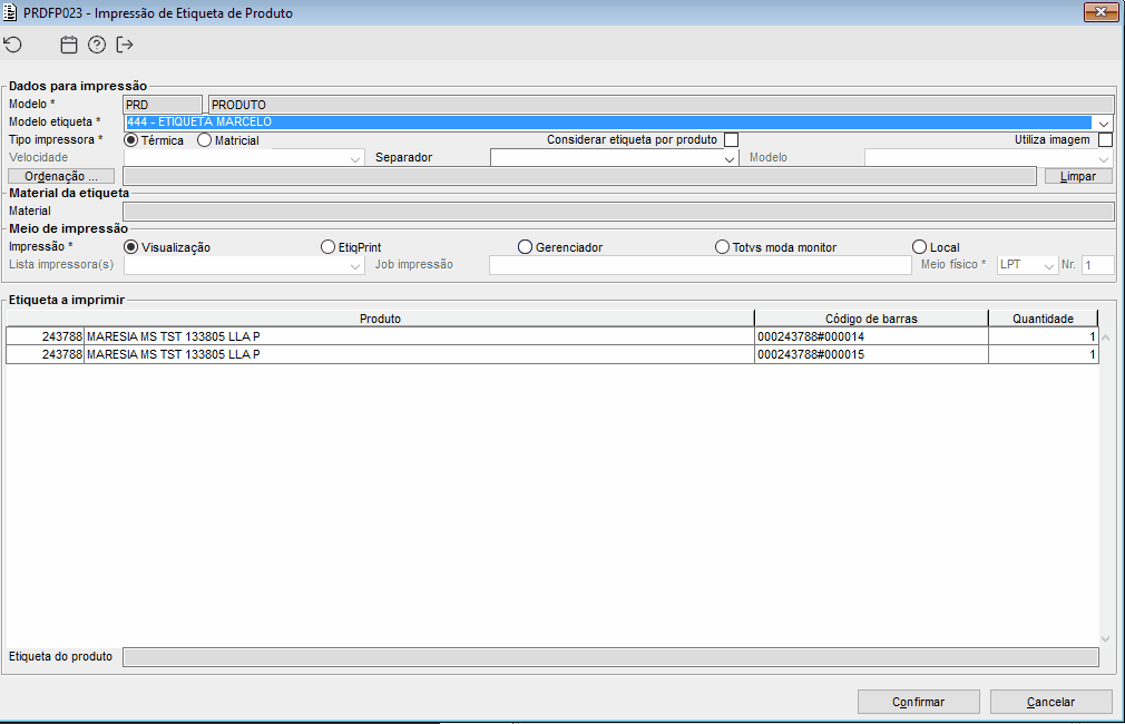 | Função: | PRDFP023 - Impressão de Etiqueta de Produto |