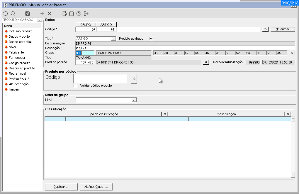 O componente PRDFM089 permite a alteração da grade de um grupo de produtos para outra grade com a mesma quantidade de tamanhos ou maior, ao realizar a troca da grade do grupo pelo componente, não existe a possibilidade de escolher qual será o tamanho destino.