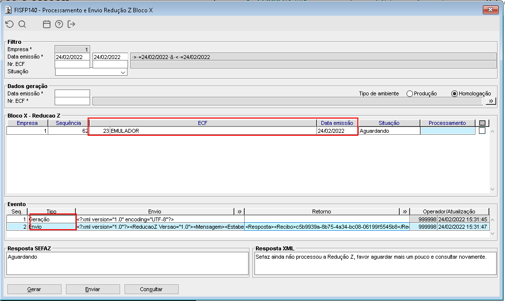 O sistema fará com o novo processo, a geração e envio das informações ao Bloco X, porém a consulta para autorização do Bloco X referente a Redução Z, deve ser feita pelo usuário no componente FISFP140.
