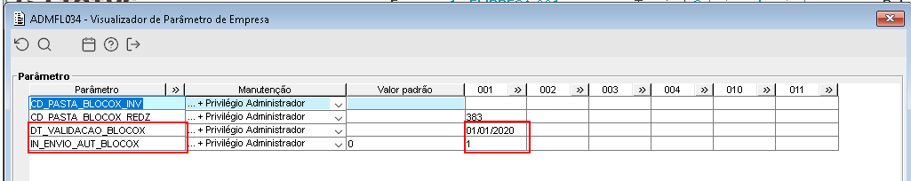 Foi disponibilizado no componente ADMFM014, um novo parâmetro IN_ENVIO_AUT_BLOCOX, no qual quando configurado com o valor 1, o sistema fará a geração e envio das informações da Redução Z para o Bloco X automaticamente.