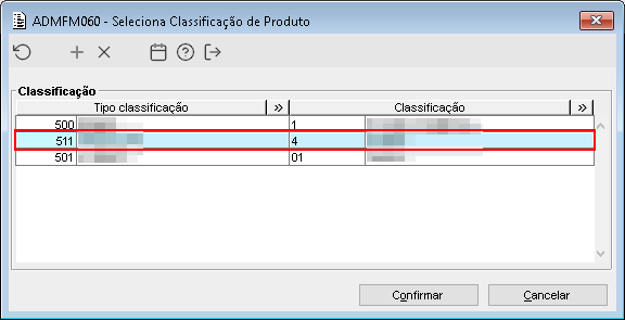 Imagem 5 - Foi selecionada a classificação 511/4 para o agrupador.