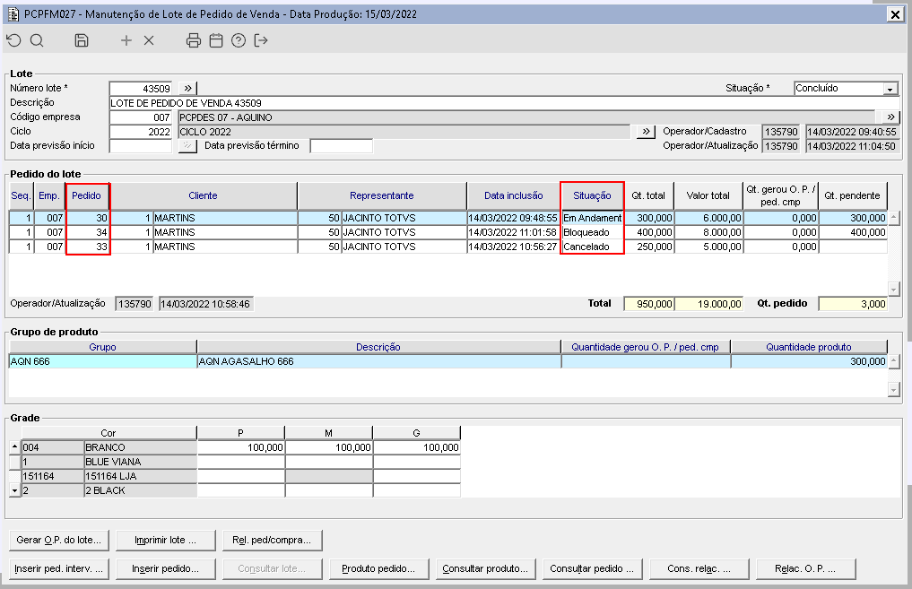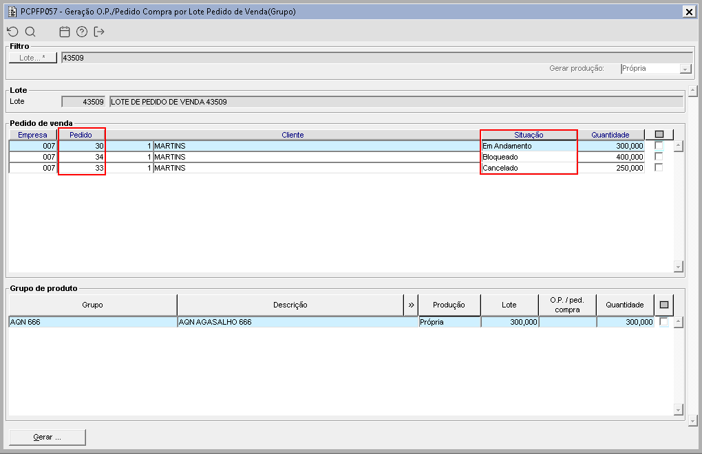 No componente PCPFP057, não estava sendo exibida a situação do pedido de venda relacionado ao lote de pedido de venda.