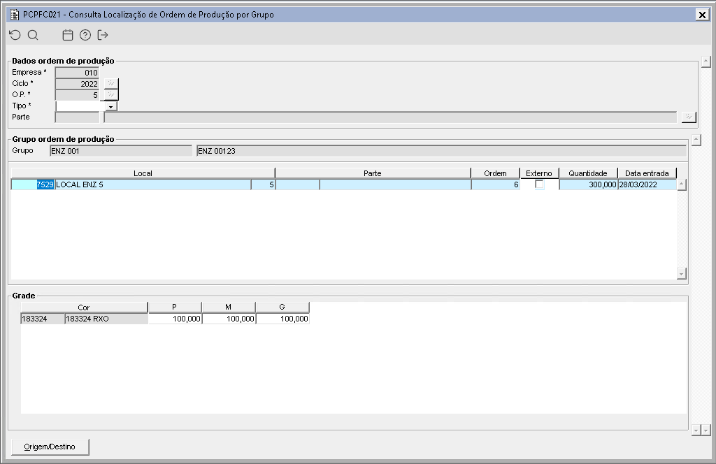 Imagem 4 - O.P. com quantidade total no local de origem do movimento de finalização.