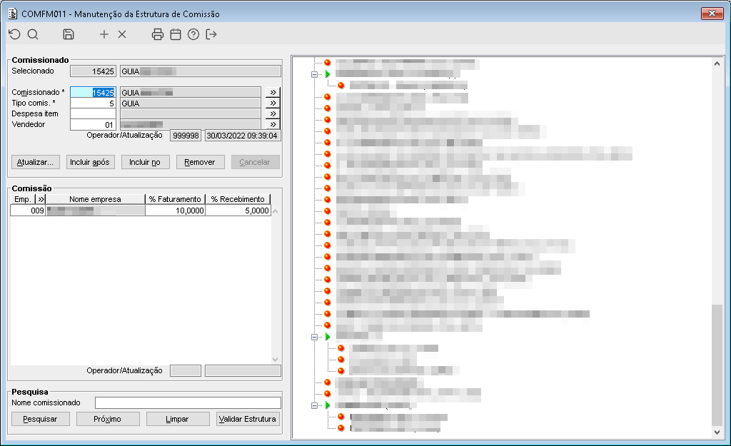 Imagem 5 - Ao consultar o fechamento de comissão (COMFP001), é possível verificar a geração da comissão do guia 15425.
