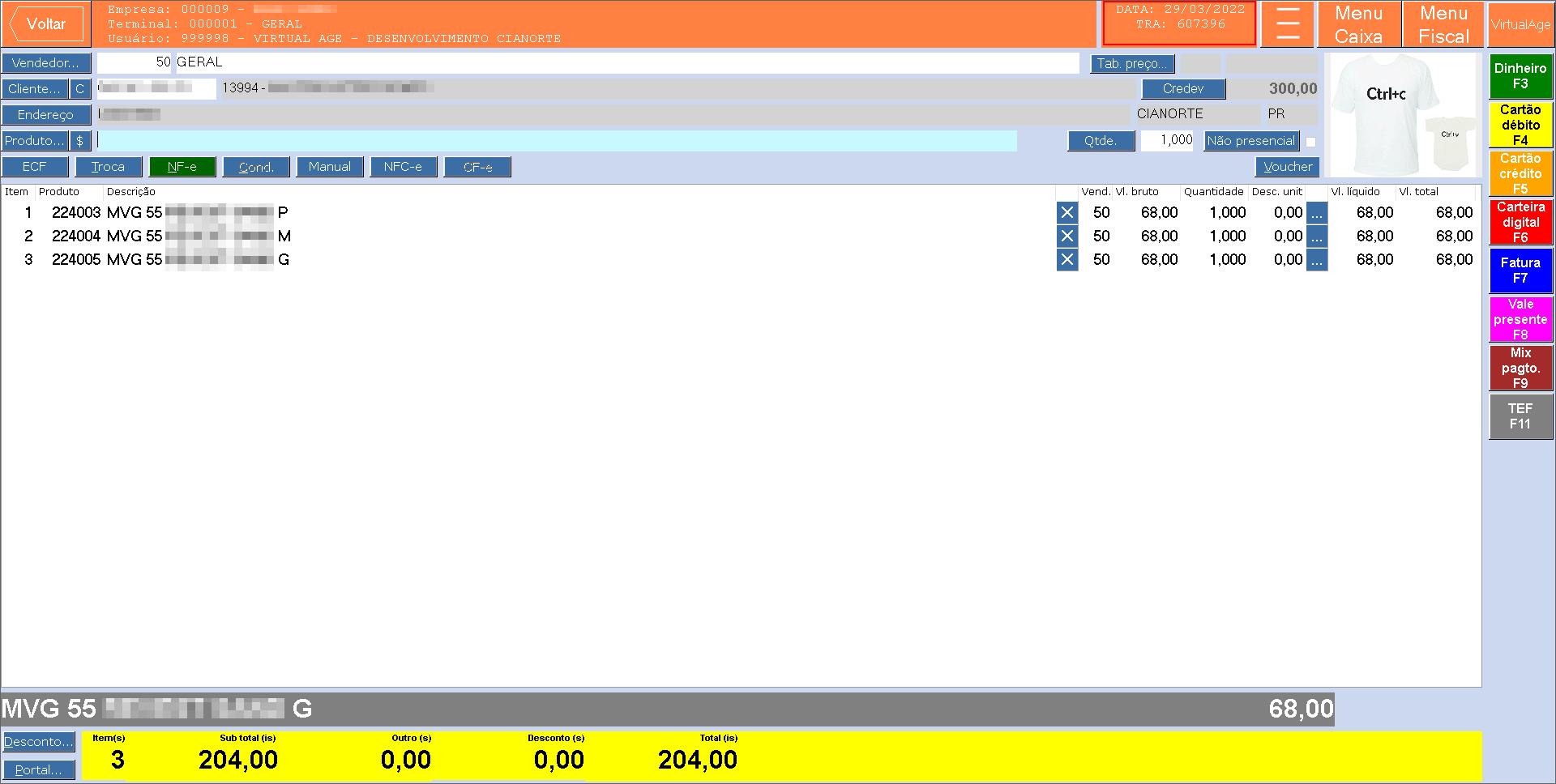 Imagem 2 - Foi gerada a transação 607396 no PDVFM001.
