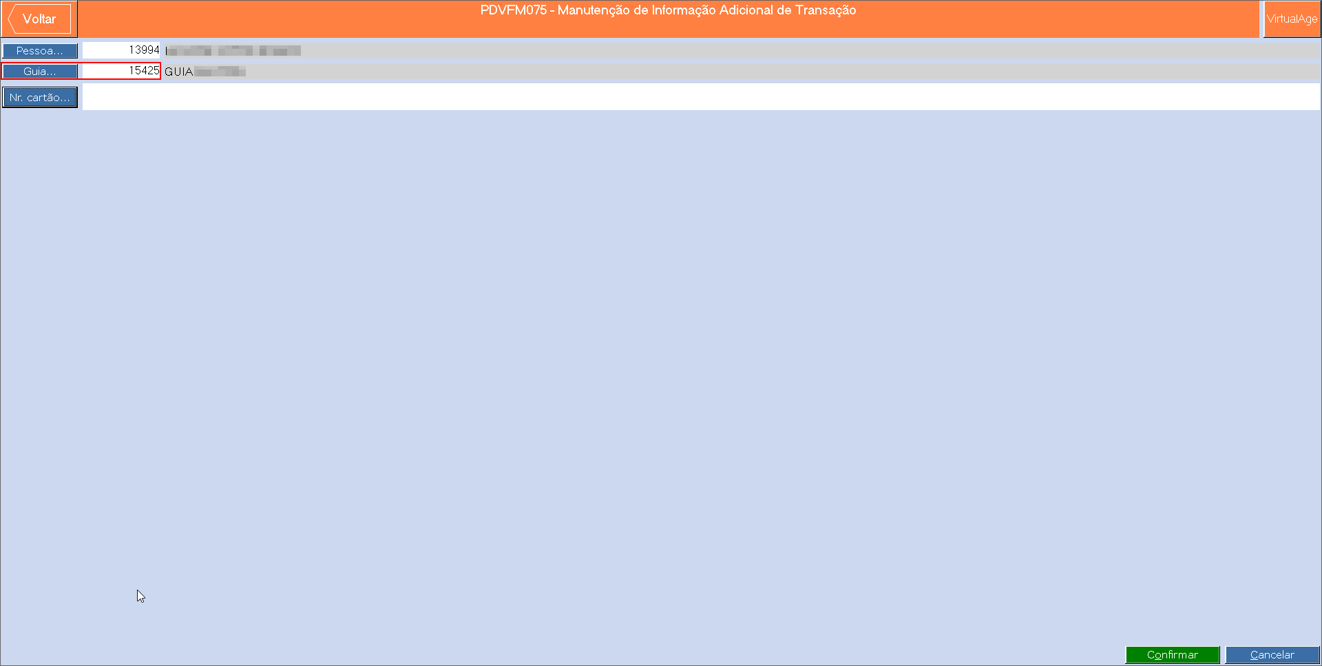 Imagem 3 - Foi informado o guia 15425 nas informações adicionais da transação (botão "☰" → botão "Info. adicional...").
