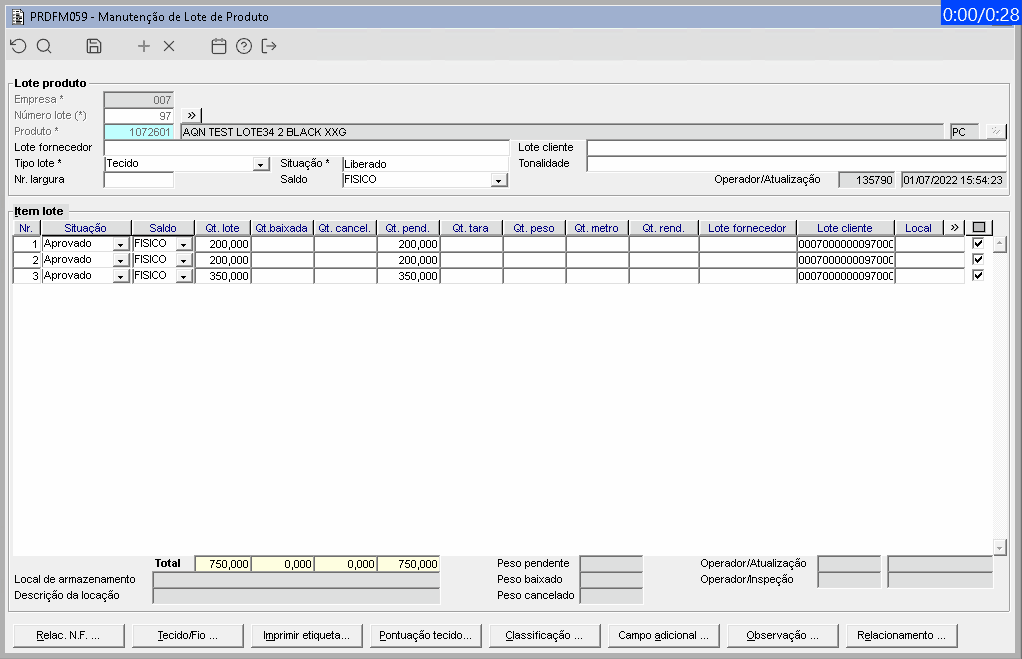 | Função: | Validar item de lote |