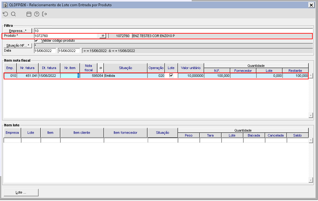 No componente QLDFP026, apenas será listadas as faturas em que a operação possui movimento de Kardex.
