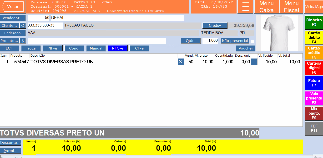 | Função: | Habilitar gravação de observação na NOTA FISCAL PDVFM001 |