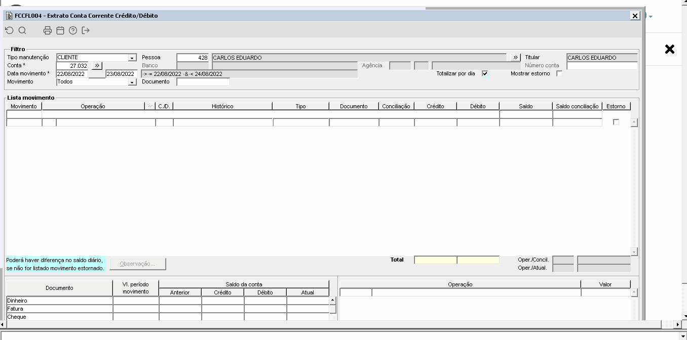 | Função: | Movimentar adiantamento quando são empresas de grupos diferentes no PEDFP144. |