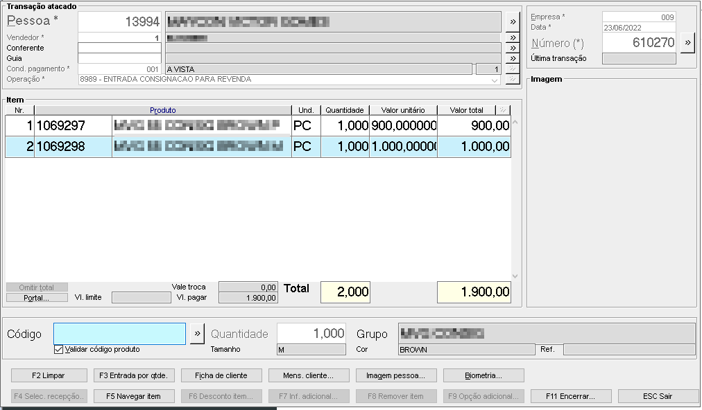 | Função: | Lançamento de transação por entrada de consignação |