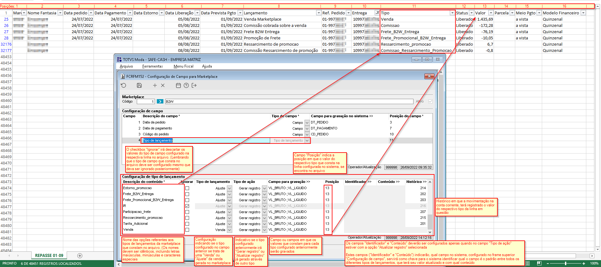 | Função: | FCRFM152/ FCRFM153/FCRFP191 - Configuração de layout e leitura de arquivo de marketplaces contendo movimentações financeiras. |